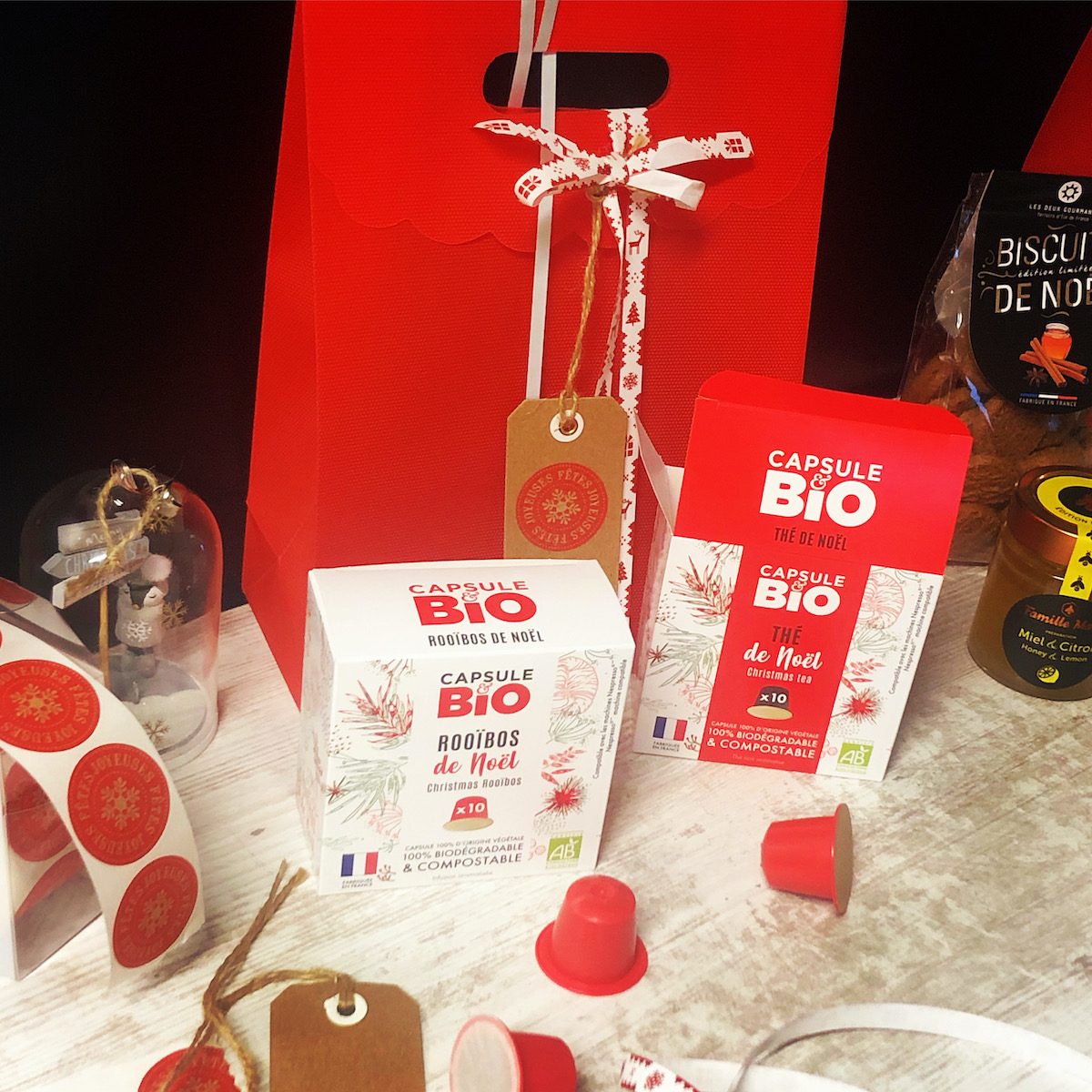 idée originale cadeau noel, coffret noel, thé de noel bio, capsules compatibles nespresso, biodegradables, fabrication France