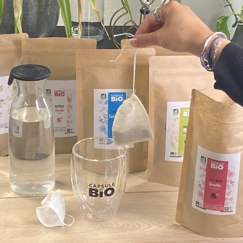 - Prenez un sachet à thé réutilisable, en coton bio ou un sachet jetable en papier filtre