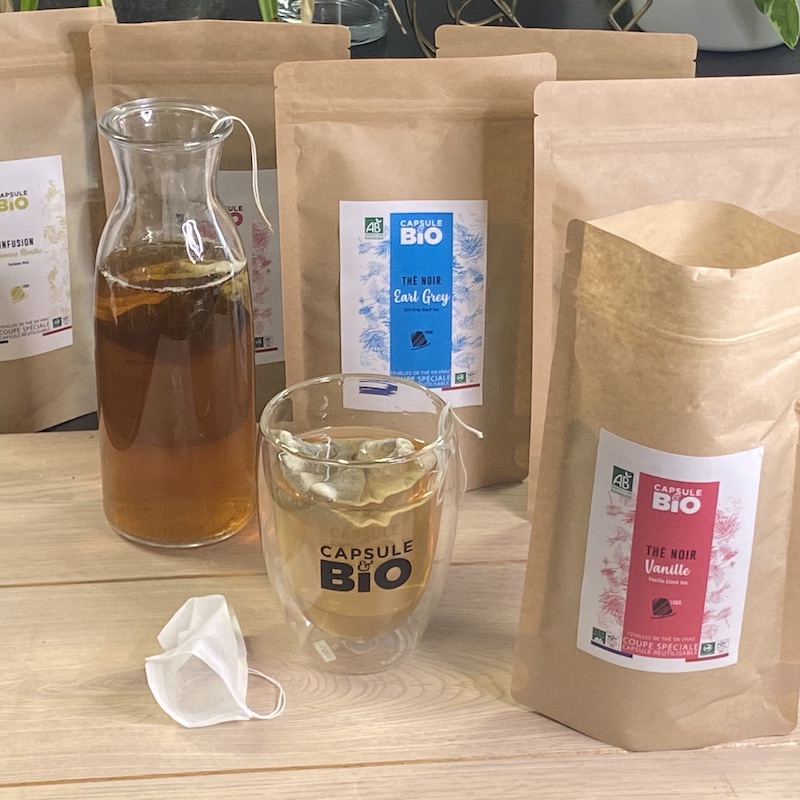 Autre avantage de l’infusion à froid : les thés et plantes développent moins d’amertume qu’avec de l’eau chaude. Même si, chez Capsul&bio, nous sélectionnons nos thés avec soin pour une amertume contrôlée !